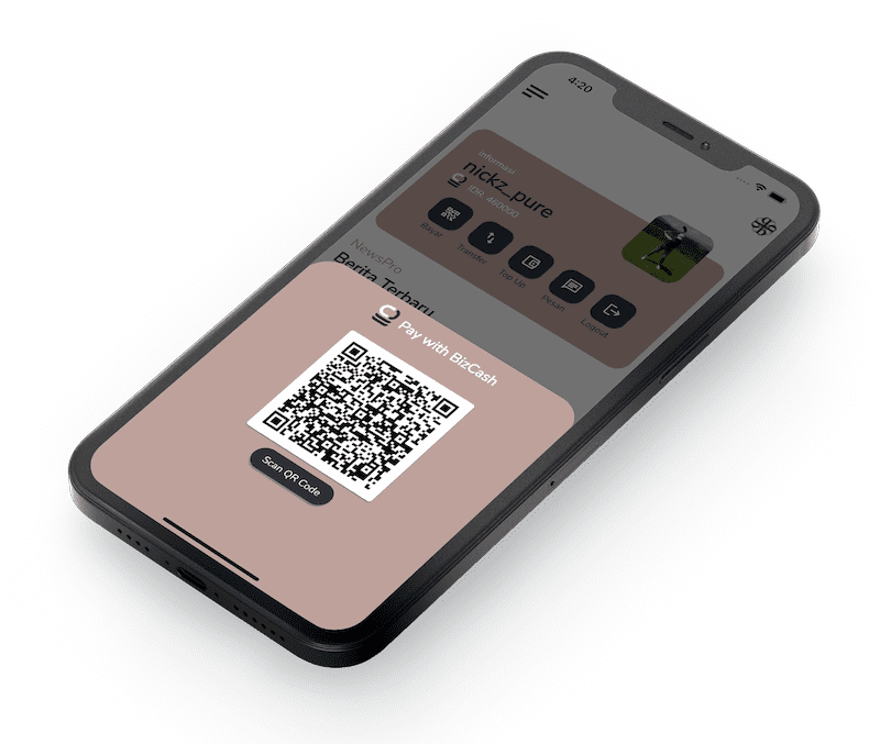 - Kemudahan bertransaksi menggunakan QR Code ke sesama pengguna BizCash.